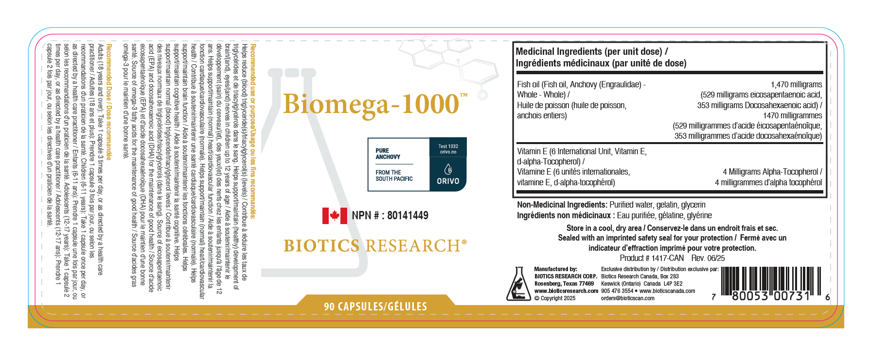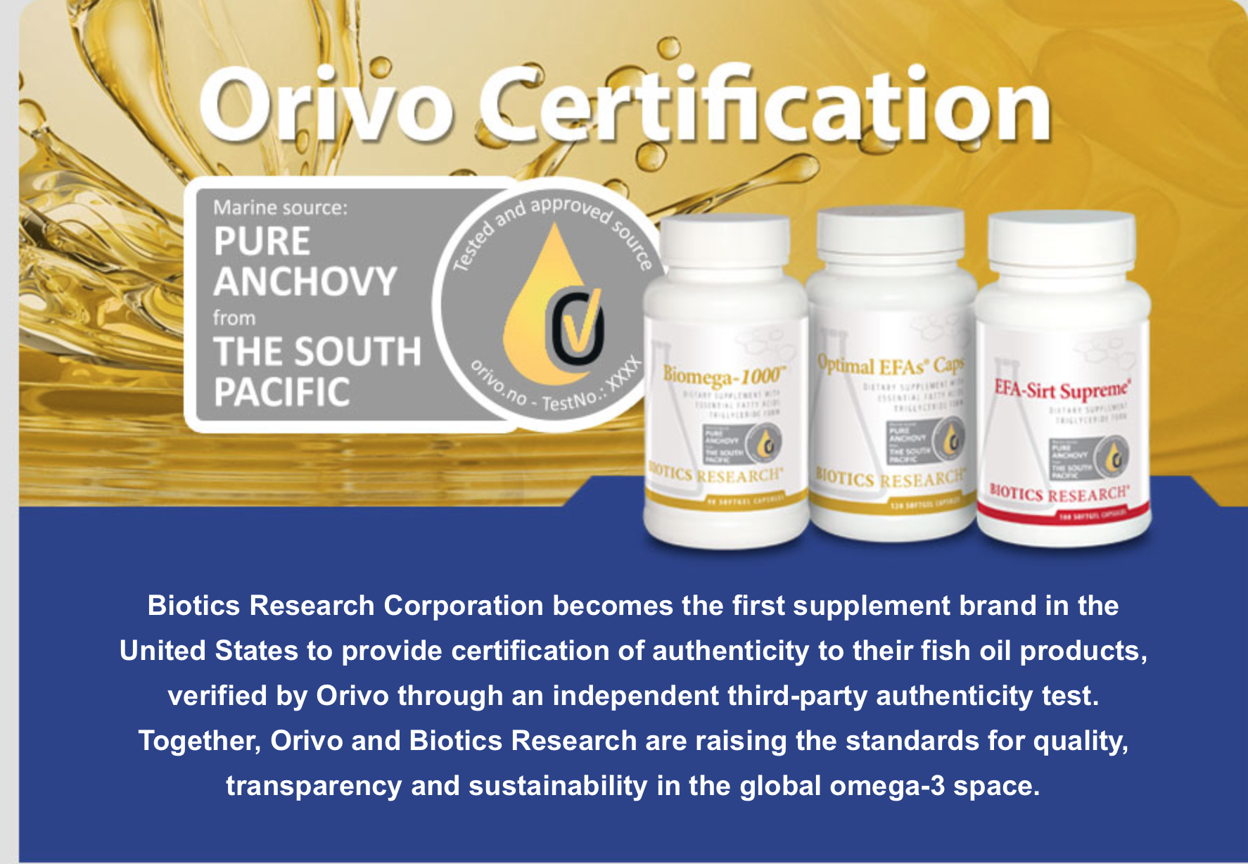 Safety: Biomega-1000 fish oil is delivered in the triglyceride (TG) form that is found in nature and shown to be the most bioavailable. Contains ingredients derived from Anchovy.