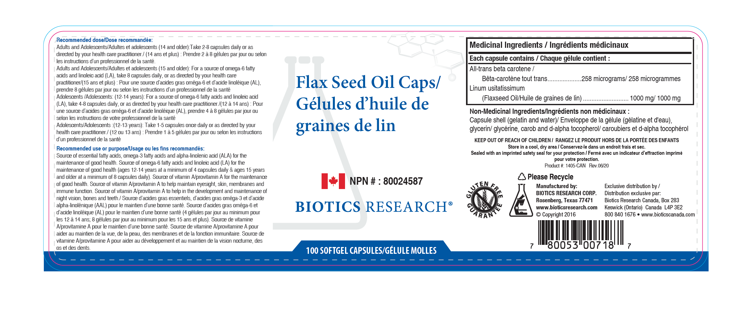 Indications: Cold pressed, organic, omega-3 flax seed oil (1,000 mg) providing alpha linolenic, linoleic, and oleic acids. Consider immune insufficiency, increased or decreased blood fats, calcium synergist, benign prostate hypertrophy, cardiovascular support, genetic predisposition to free radical issues