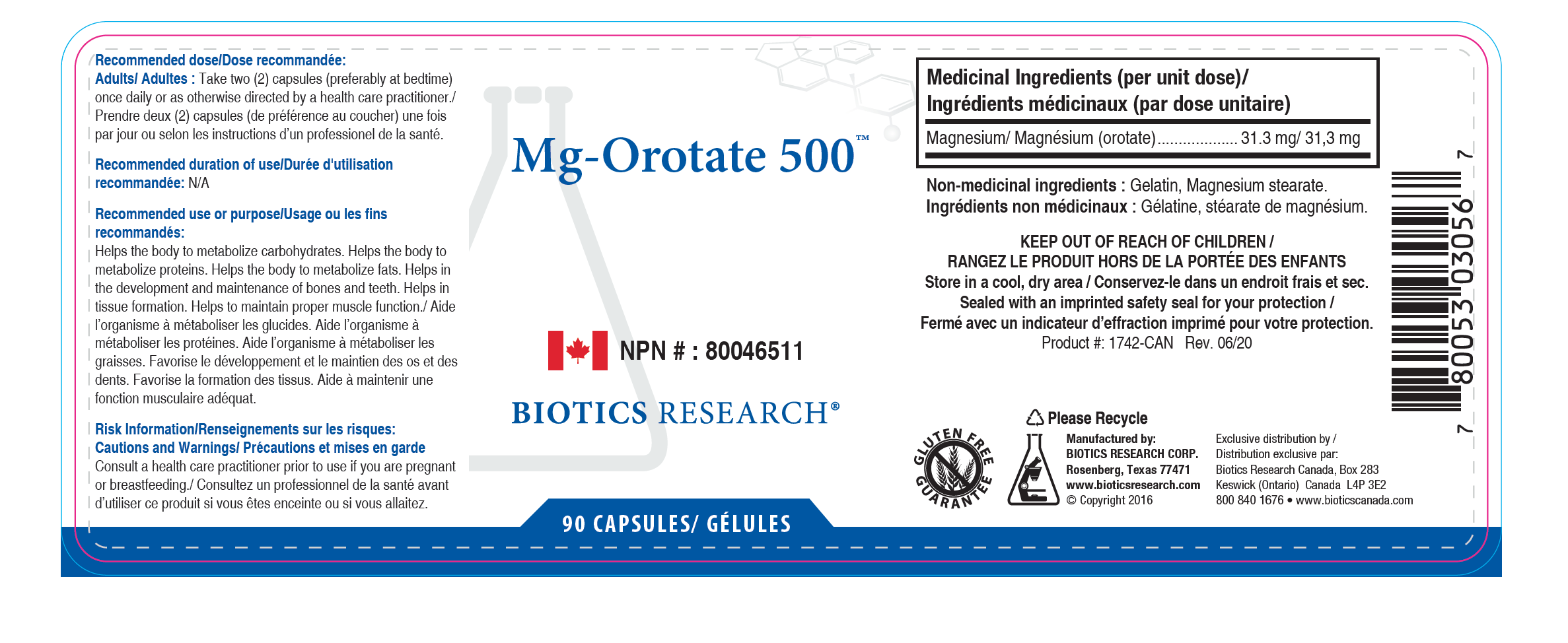 Ingredients: Each Capsule supplies 500 mg of fully reacted Magnesium Orotate. NMI\'s Capsule shell (gelatine and water), cellulose and magnesium stearate (vegetable source).