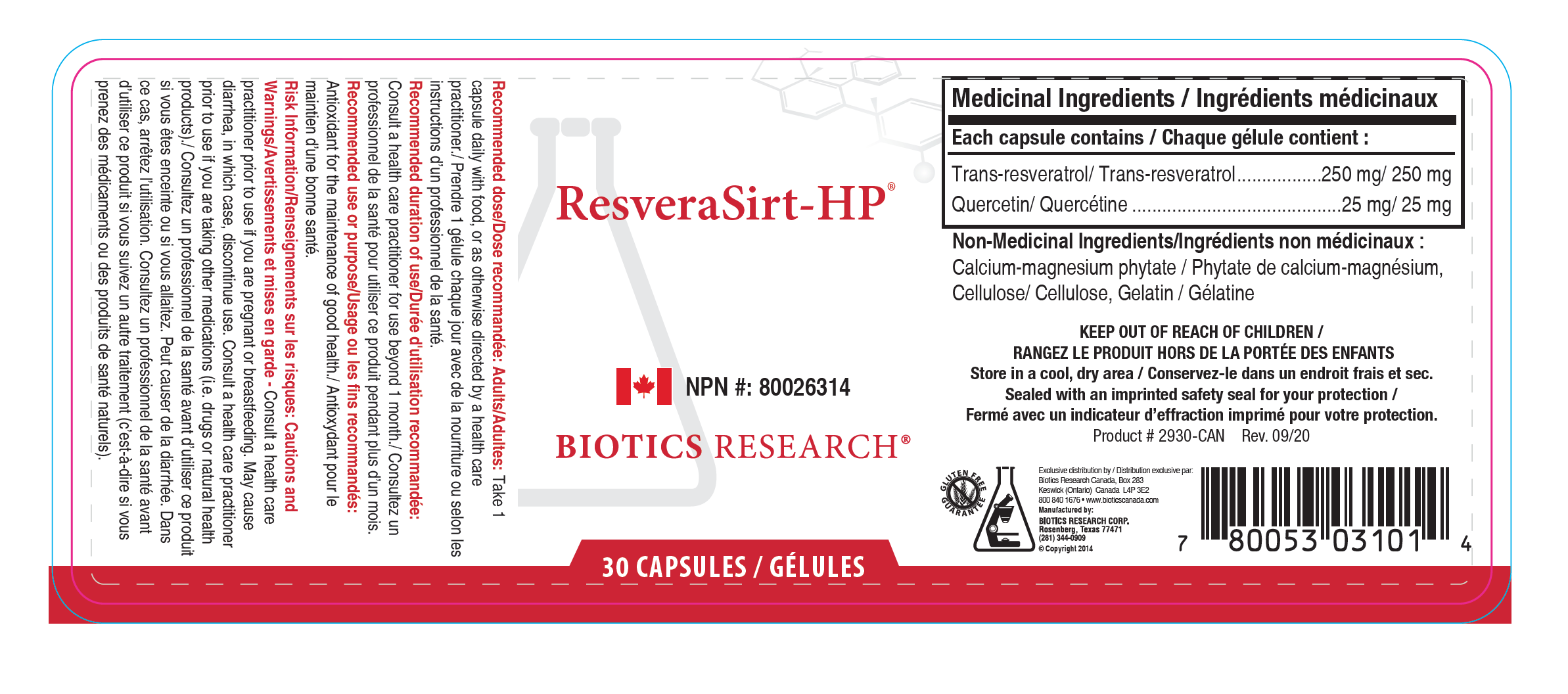 ResveraSirt-HP 30 Product Label (ResveraSirt-HP_30_2930_Newbarcode.png, 449 Kb) [Download]