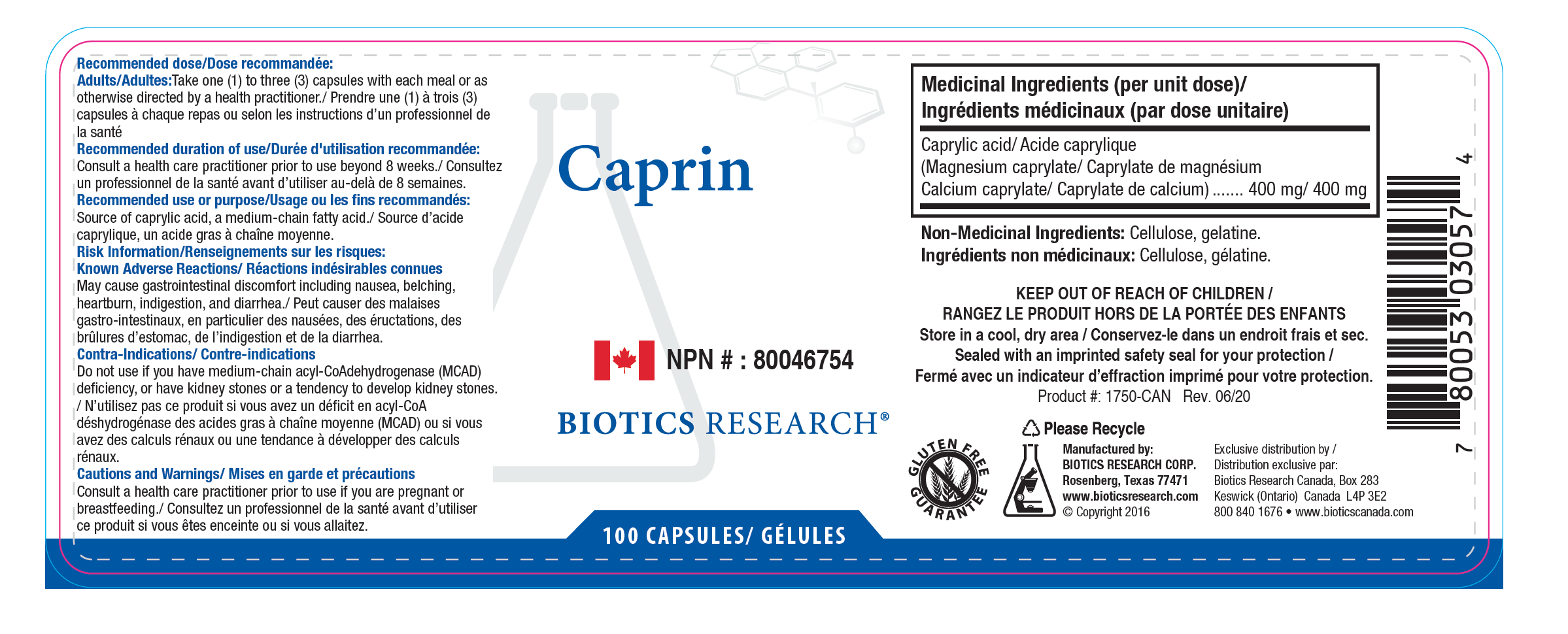 Caprylic Acid (as calcium and magnesium caprylate) 1,200 mg