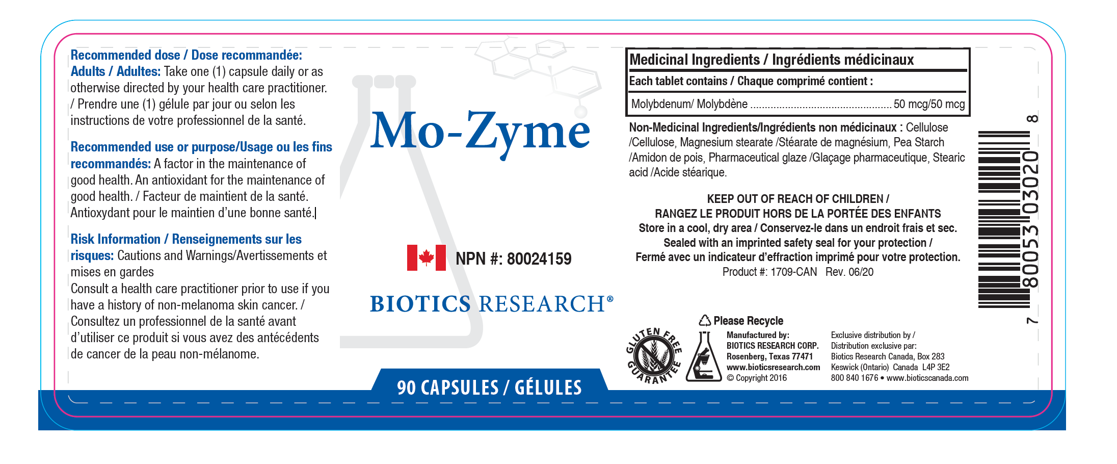 Ingredients: Vegetable culture source molybdenum 50 mcg