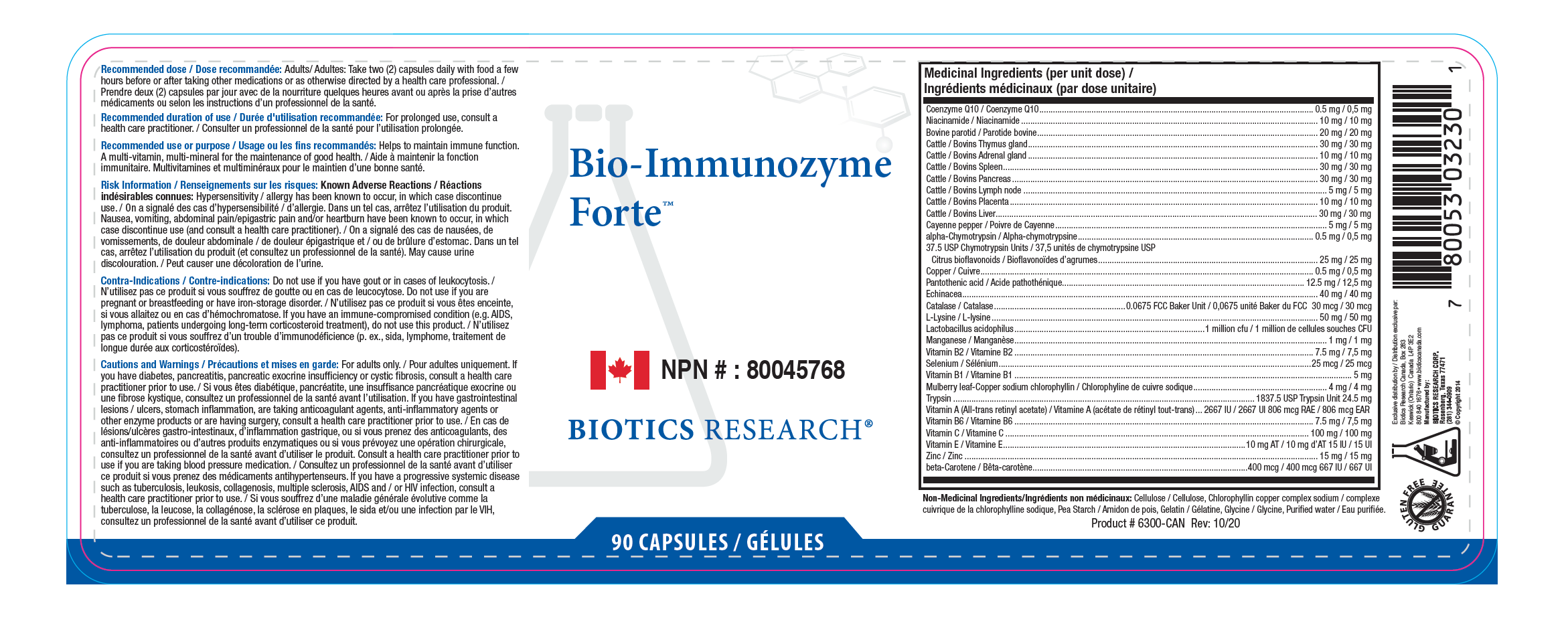Indications: Broad-spectrum vitamin, mineral, trace element, neonatal glandular (adrenal, thymus, spleen, liver, pancreas, parotid, lymph, placenta), herbal (Echinacea, Capsicum), proteolytic enzyme (trypsin, alpha chymotrypsin), vegetable culture antioxidant enzymes SOD and catalase, bioflavonoid, chlorophyll formulation to consider support immune function and for chronic immune conditions, possibly hepatitis.