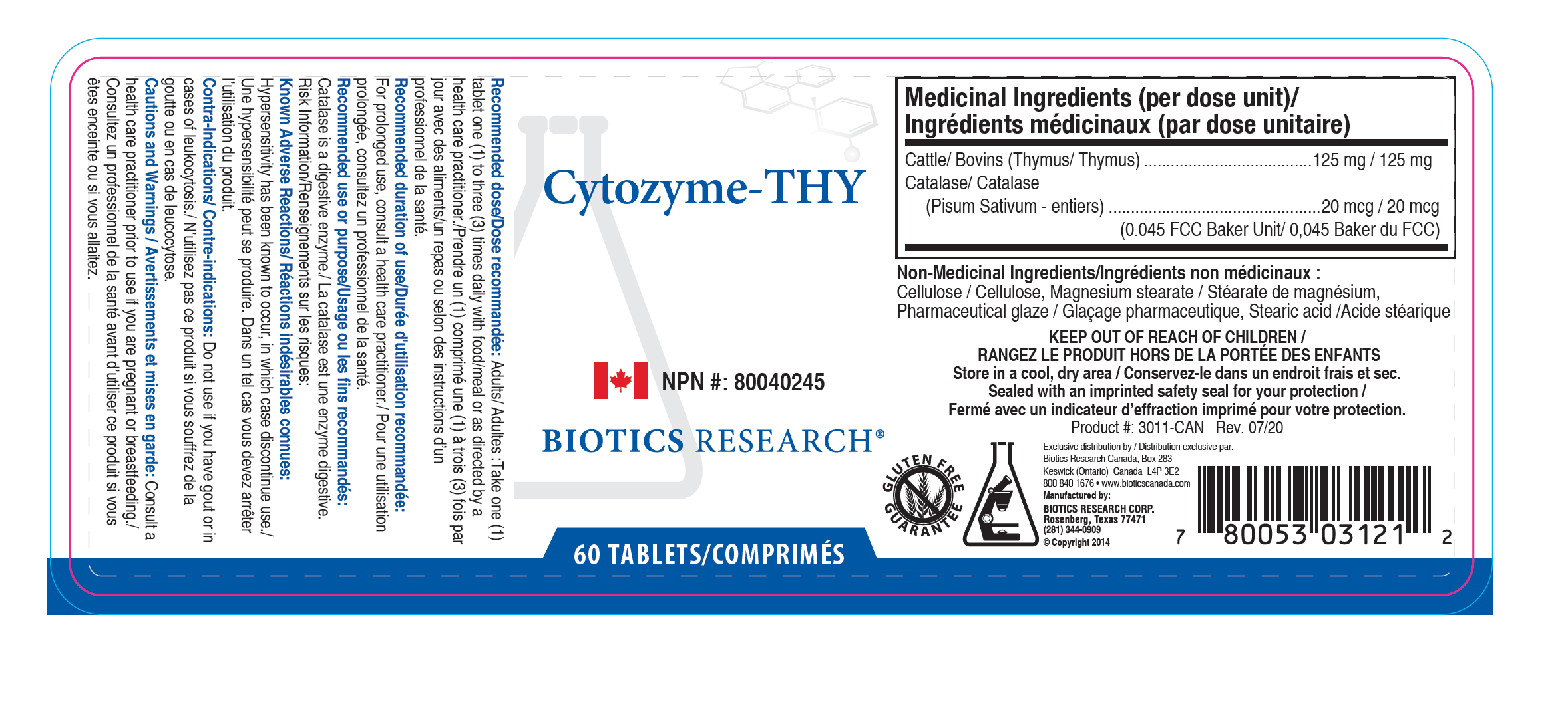 Ingredients: Neonatal, bovine thymus tissue concentrate (125 mg) in a vegetable culture, antioxidant enzyme base of superoxide dismutase and catalase