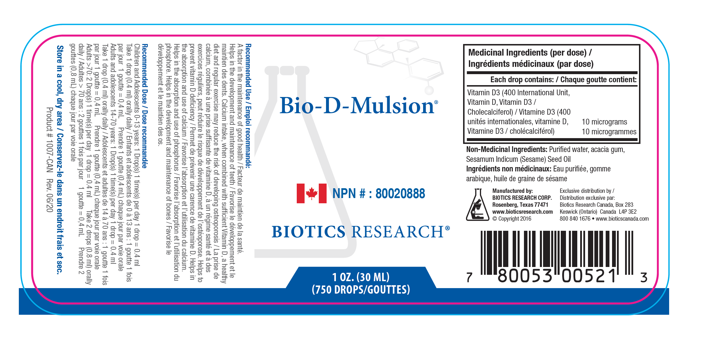 Description: Vitamin D Microemulsified for complete uptake and absorption (in the form of cholecalciferol) 400 IU per drop extracted from Lamb's wool. GREAT FOR CHILDREN.